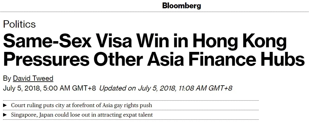 ““Singapore is still way behind Hong Kong,” said Leow Yangfa, executive director of Oogachaga, a nonprofit organization working with LGBT people. “The fact will certainly not be lost on our government that this means Hong Kong will now have an even bigger competitive edge.””