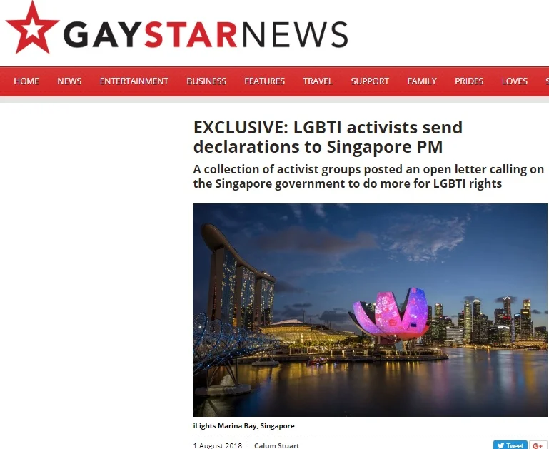 “‘The reason we are making this public is because we believe in engaging in an open and transparent way with our elected officials, and letting them know that this is what we believe in, and invite them to join with us. Hence the last line in the letter to ‘invite you to help us create avenues for dialogue’,’ Leow Yangfa, the executive director of LGBTI-friendly counselling organisation Oogachaga, told GSN. ”