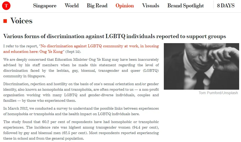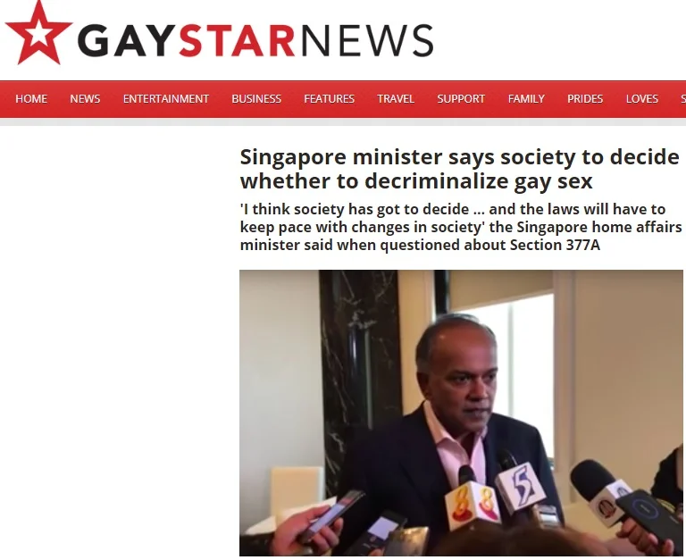 Although not proactively enforced, the continued existence of section 377A in Singapore’s penal code creates an environment where it is acceptable to treat members of the LGBT community in an unequal way, he said.