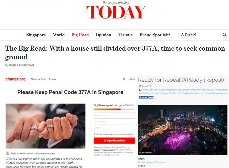 “Mr Leow Yangfa, executive director of non-profit organisation Oogachaga that works with the LGBTQ community, acknowledged that the Indian court ruling played a “big part in re-igniting and re-inspiring the latest round of petitions, debates and discussions about repealing Section 377A”.”