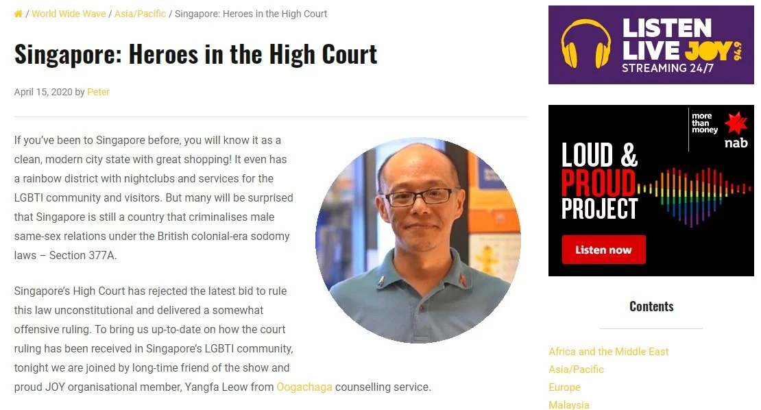 “Leow Yangfa, executive director of an organisation that works for LGBTQ+ rights in Singapore, felt that the judgement played a “big part in re-igniting and re-inspiring the latest round of petitions, debates and discussions about repealing Section 377A””