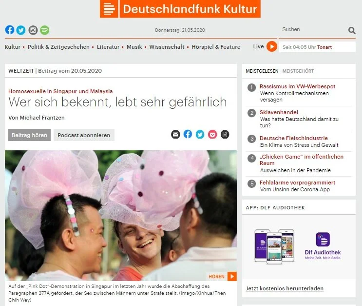 Oogachaga regularly engages with local, international, mainstream, independent, print and online media, in order to raise awareness of issues that impact the LGBTQ+ community in Singapore. Contact us if you would like to include us in your story.