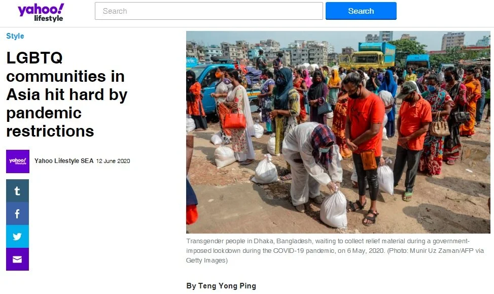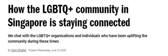“Leow Yangfa, executive director of Oogachaga, an NGO that provides counselling services for the LGBTQ community in Singapore, said that some fear domestic violence while closeted youth experienced tensions with family members while at home, as schools and workplaces closed.”